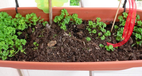 Φέτος έσπειρα για πρώτη φορά διάφορους σπόρους, σε γλάστρες αλλά και σε ζαρντινιέρες που κρέμονται απάνω στα κάγκελα. Αναφέρθηκα ήδη στη λεβάντα την οποία χρειάστηκε να κουκουλώσω με τούλι για να γλιτώσω κανένα μικρό φιντανάκι από τα πουλιά που είχαν ανακατέψει το χώμα αρκετές φορές. Παρατήρησα κάποια κοτσύφια που έκαναν βόλτες – το μπαλκόνι μου είναι στον τρίτο όροφο – και κατέληξα ότι μάλλον αυτοί είναι οι ένοχοι! Τώρα κατάλαβα γιατί είναι χρήσιμα τα σκιάχτρα καθώς και κάποια συμπαθέστατα ξύλινα διακοσμητικά τα οποία στηρίζονται σε ένα καλαμάκι το οποίο μπήγεις στο χώμα. Θα σπεύσω να προμηθευτώ διάφορα ξύλινα μυλαράκια που βρίσκω εύκολα σε γνωστό παιχνιδάδικο και βλέπουμε. Προς το παρόν έδεσα μερικές παλιές κορδέλες σε καλαμάκια για σουβλάκι. Στις φωτογραφίες φαίνεται το πασχαλινό σκάψιμο που περιελάμβανε το σπαρμένο βασιλικό, τον ήδη ταλαίπωρο άνηθο, το σγουρό μαϊντανό και φυσικά … τη λεβάντα!